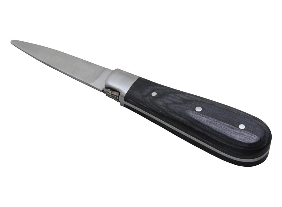 Laguiole Austernöffner. Griff aus dunkelgrauem Massivholz. Die stumpfe Klinge ermöglicht ein einfaches Öffnen der Austern ohne Verletzungsgefahr.